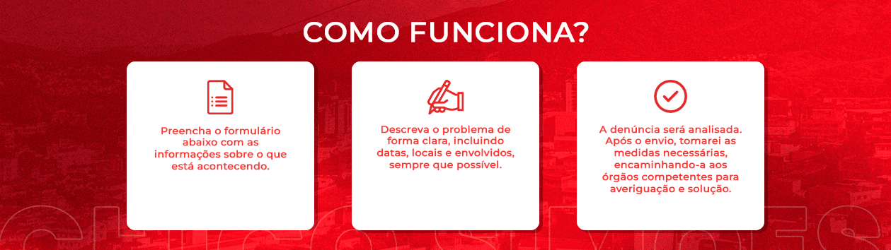 Sua denúncia será totalmente anônima, garantindo sua segurança e privacidade. A sua participação é fundamental para que possamos identificar os problemas e buscar as melhorias que nossa cidade tanto precisa.